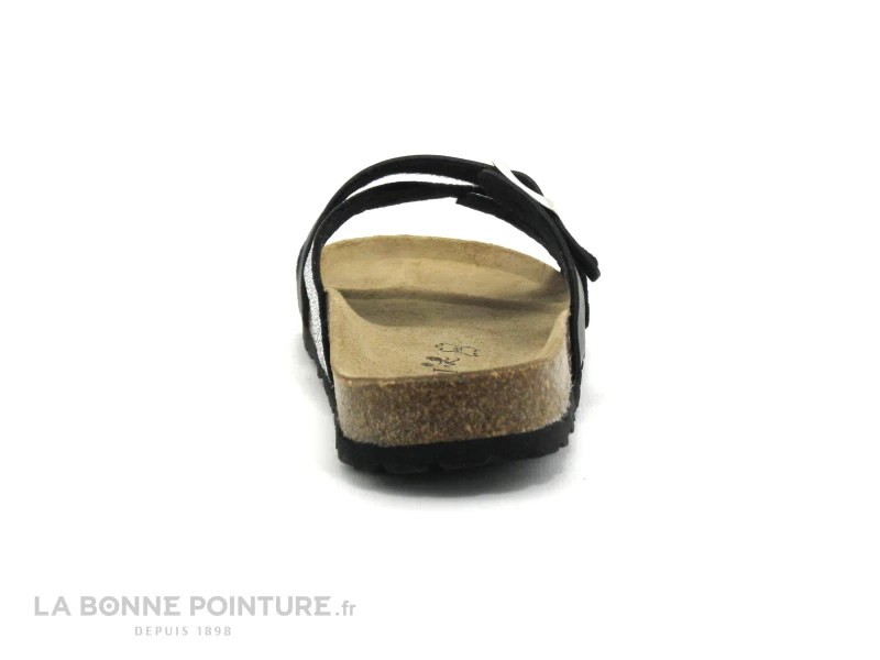 La semelle de marche des mules est en liège sur une base noire avec un talon d’environ 1.5 cm.
