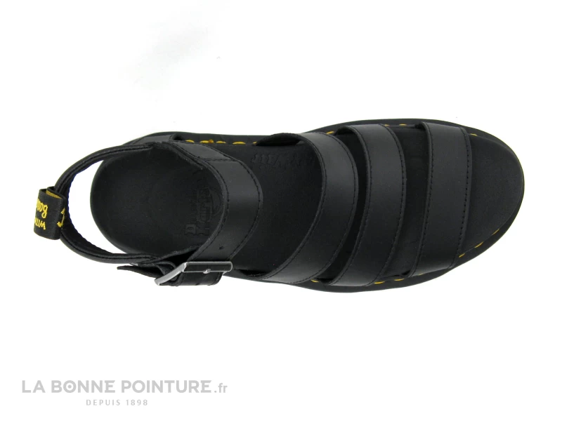 La bride à boucle argentée se règle sur 5 positions afin de fermer les nu-pieds noirs Doc Martens Blaire.
