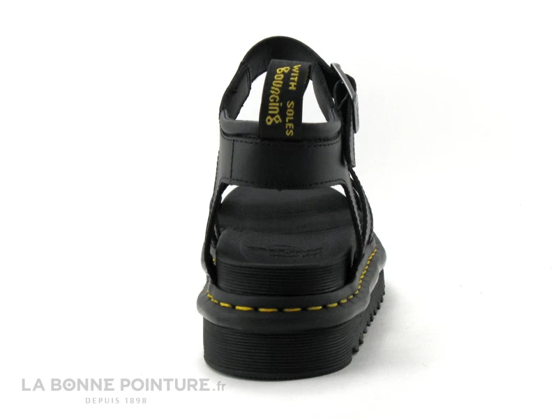 Cette superbe sandale spartiate Dr Martens Blaire est en cuir enduit noir, caractérisé par un bel aspect mat.