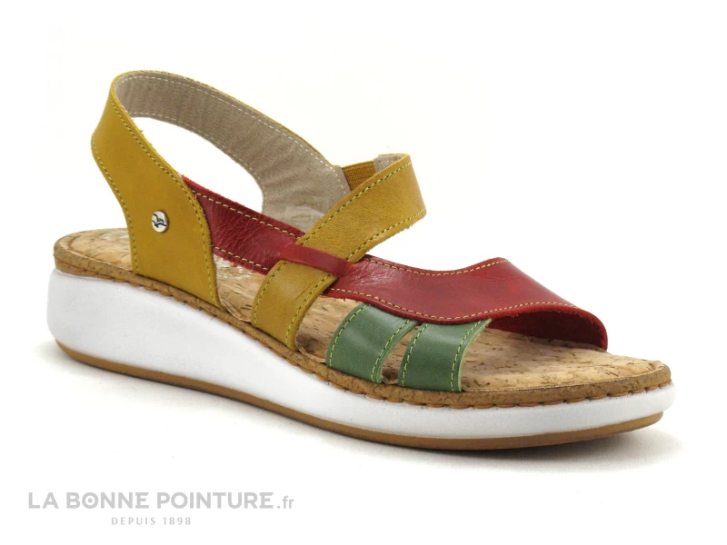 Les sandales Femme en cuir rouge et jaune Fly Flot Fragony, des nu-pieds légers et fantaisie pour l’été au très bon rapport qualité / prix !