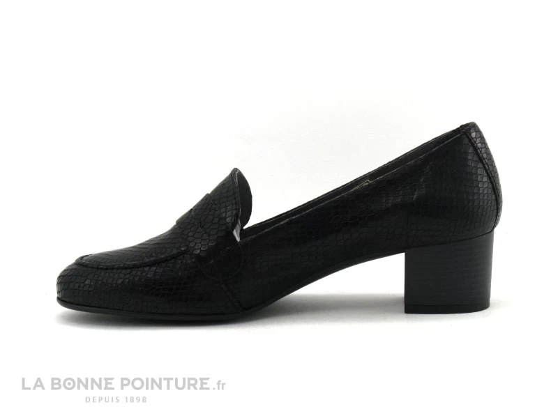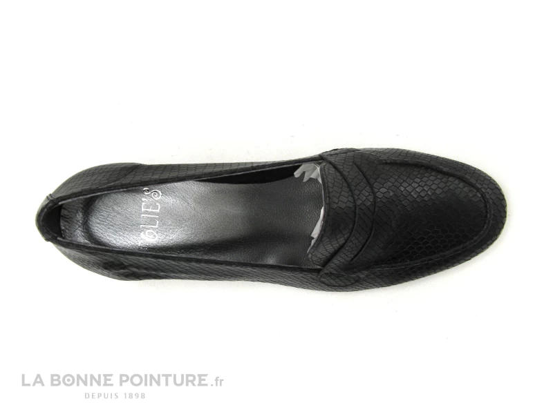 Ce mocassin à talon Folies Maho est en cuir noir effet lézard, pour s’associer avec toute votre garde-robe…