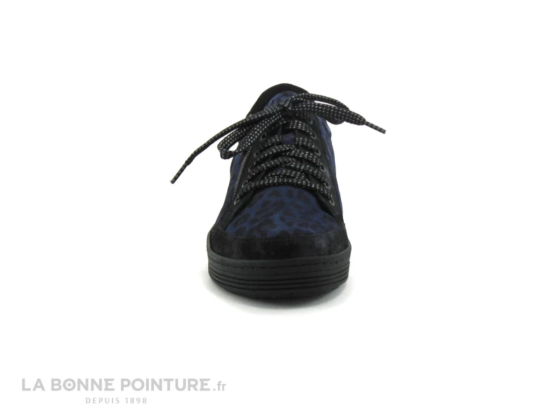 Cette basket de ville Femme est en cuir velouté noir et bleu marine, avec un imprimé léopard original et très mode…
