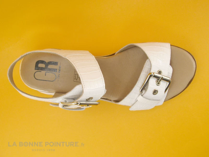 Cette sandale plateforme Geo Reino Gifabe est fabriquée avec un beau cuir blanc aspect reptile.