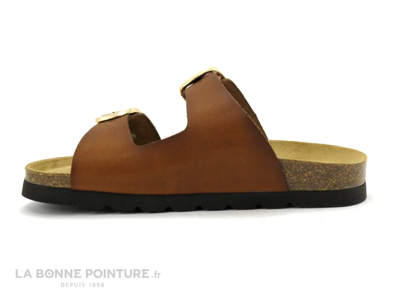 La mule Géox propose deux larges brides en cuir marron qui enveloppent efficacement le pied.