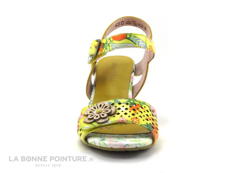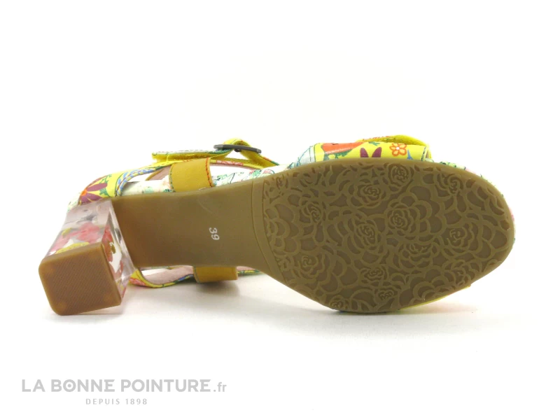 Elégantes et très originales, les sandales en cuir jaune fleuri Laura Vita Lucieo 07 !