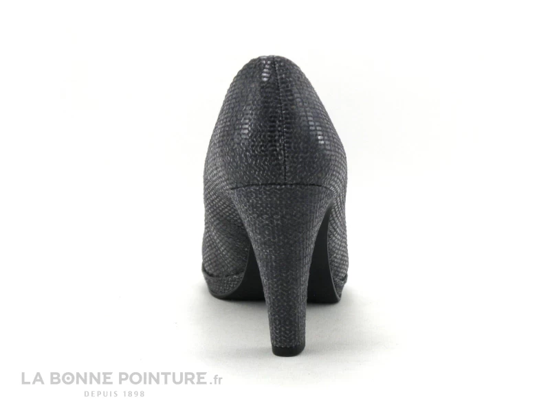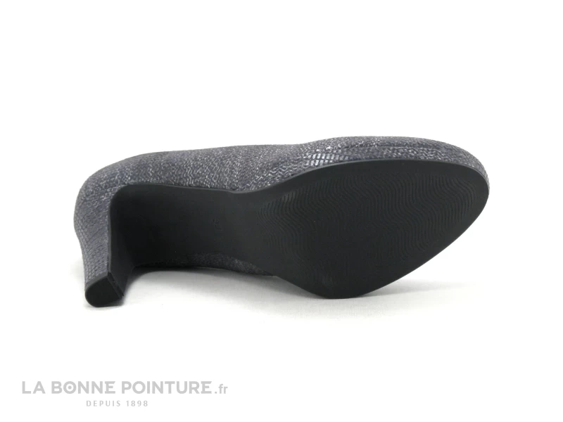 Cet escarpin mode Femme est en textile fantaisie gris, avec une pointe de noir et un bel aspect à la fois velouté et légèrement brillant.