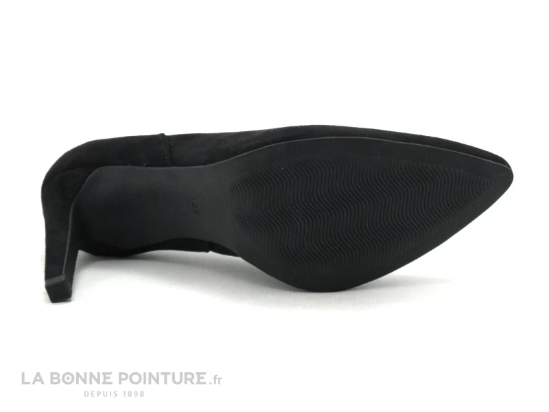 Cet escarpin pas cher Marco Tozzi est en textile velouté noir, avec le bout pointu et la tige qui remonte sur les côtés.