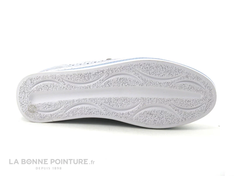 La semelle de marche du derbi bleu ciel Femme est flexible et anti-dĂ©rapante, bicolore blanche et bleu avec un agrĂ©able talon compensĂ© d’environ 2.5 cm.