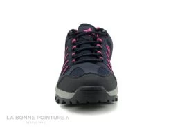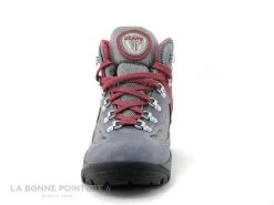 Cette basket rando Femme est en cuir velours gris, avec une partie en textile rose fuschia qui féminise la chaussure.