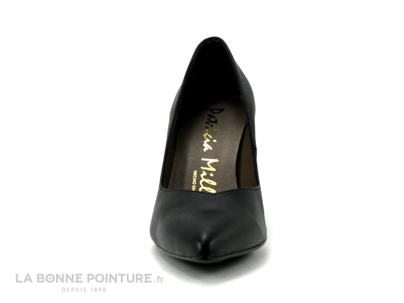 Ces escarpins pointus Patricia Miller sont en cuir lisse noir, avec une tige bien décolletée qui différencie la chaussure.
