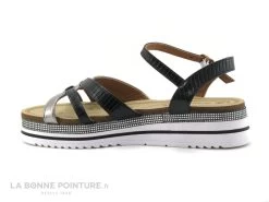 Une large lanière effet python caractérise la chaussure, aux tons de marron et de noir.
