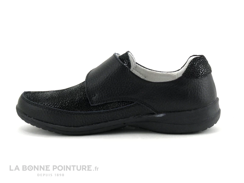 Fermeture facile et petit prix pour cette paire de chaussures Femme cuir noir et fermeture à scratch TopWay B843074 !