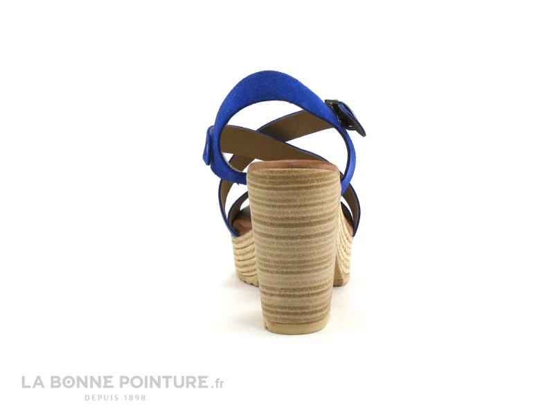 Ce nu-pieds mode Femme est en cuir velours bleu royal, avec deux brides qui se croisent élégamment sur le dessus du pied.